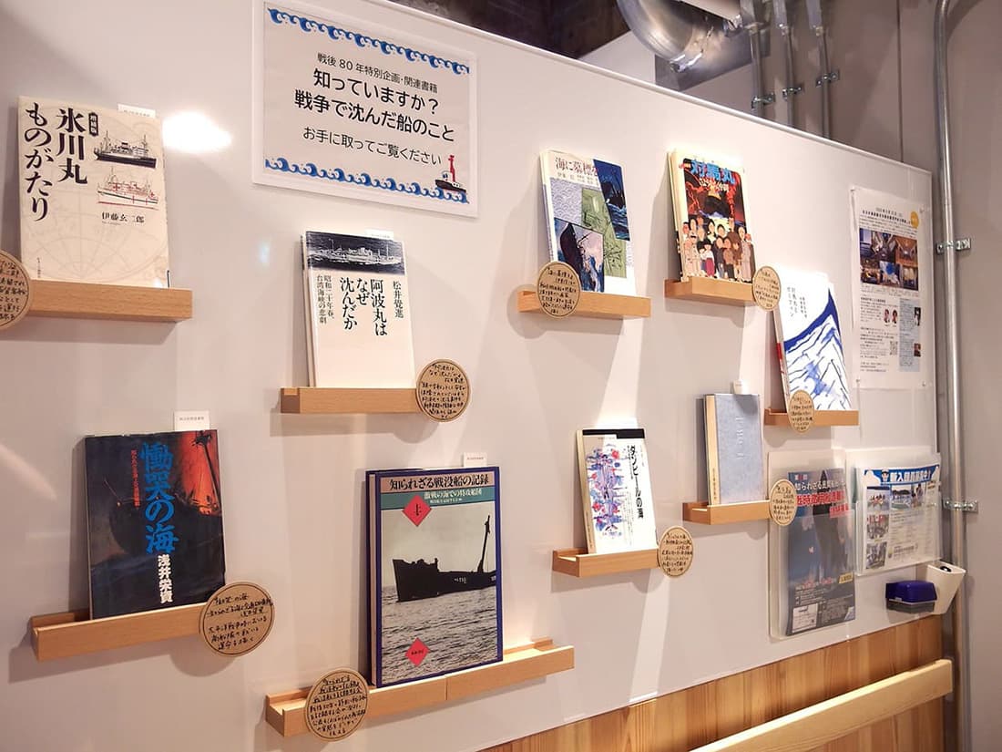 当館B2Fの図書資料室では戦没船に関する書籍をピックアップしてご紹介しました。このほかにも、戦没船に関する貴重な書籍を数多く開架図書として揃えていますので、どなたでもご覧いただくことができます。