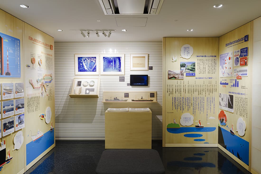 当館B1F展示室には戦没船と船員に関するコーナーを常設しています
